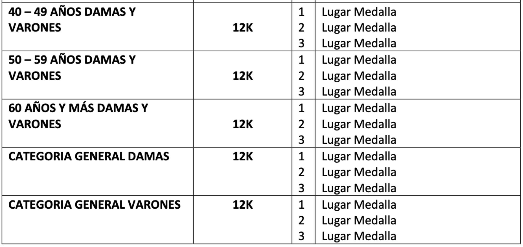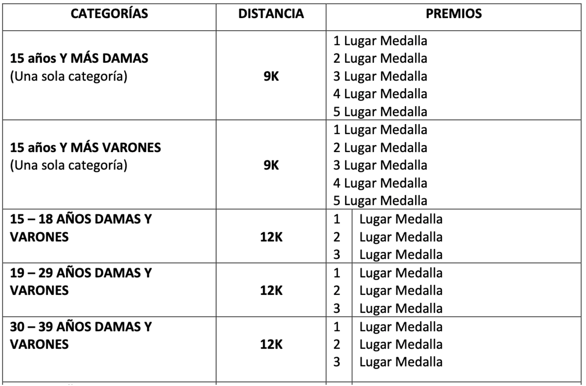 CATEGORIA/ DISTANCIA /PREMIACIÓN